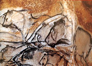 A pride of lions, again in profile, from the Grotte Chauvet cave. Painted by Cro‑Magnons, they are at least thirty thousand years old, yet astonishingly realistic by any standard. From Clottes, World Rock Art, p. 45. |