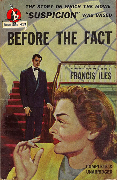 But by the end of the 1920s the best practitioners felt that the classic sleuth format needed rethinking. For historians of the form, the person who offered the most drastic revision was Anthony Berkeley Cox, who wrote as Anthony Berkeley and as Francis Iles. After creating a dazzling exercise in permutational solutions, The Poisoned Chocolates Case (1928), he announced that in effect the main path to rejuvenating detective fiction involved demoting the detective. Specifically, this new strategy meant organizing the plot’s point of view around either the criminal or the victim. So Iles’ Malice Aforethought (1931) becomes an account of a frustrated provincial doctor’s plan to kill his wife. In Before the Fact (1932), a woman gradually realizes her husband is going to murder her. Neither book is narrated in the first person, but each does confine itself wholly to the mind of the protagonist. Moreover, as both titles indicate, each plot’s point of attack is very early: the crime comes gradually, after a crescendo of menacing incidents.