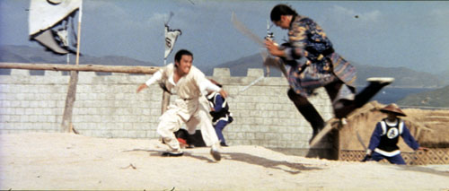 According to Lau Kar-leung, he and Tong Kai saw wirework in the Japanese film The Bloody Shuriken (Akai shuriken,